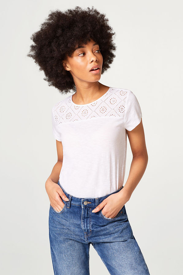 Details: Die Passe aus Lochspitze verleiht diesem lässigen Shirt einen Touch spielerischer Weiblichkeit.